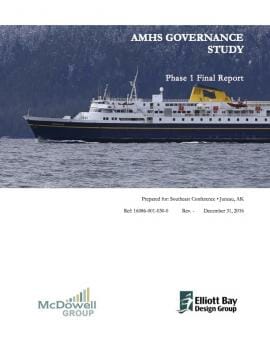 Phase One of the AMHS Strategic Operational and Business Plan was developed by Elliott Bay Design Group (EBDG) and McDowell Group. The study identified alternative governance structures that could help the Alaska Marine Highway System (AMHS) achieve financial sustainability. This statewide effort was managed by Southeast Conference and guided by a 12- member steering committee of stakeholders from across Alaska.